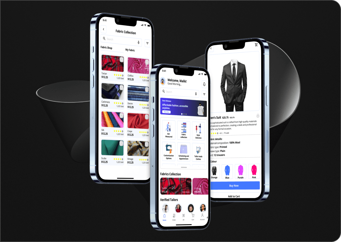 //////// I design this personal project in order to allows customers to order and receive tailored clothes from the comfort of their homes. The app streamlines the ordering process, and delivery is made to the customer's doorstep.
